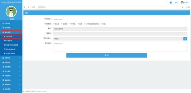 在实验管理中建立拟申报的项目。